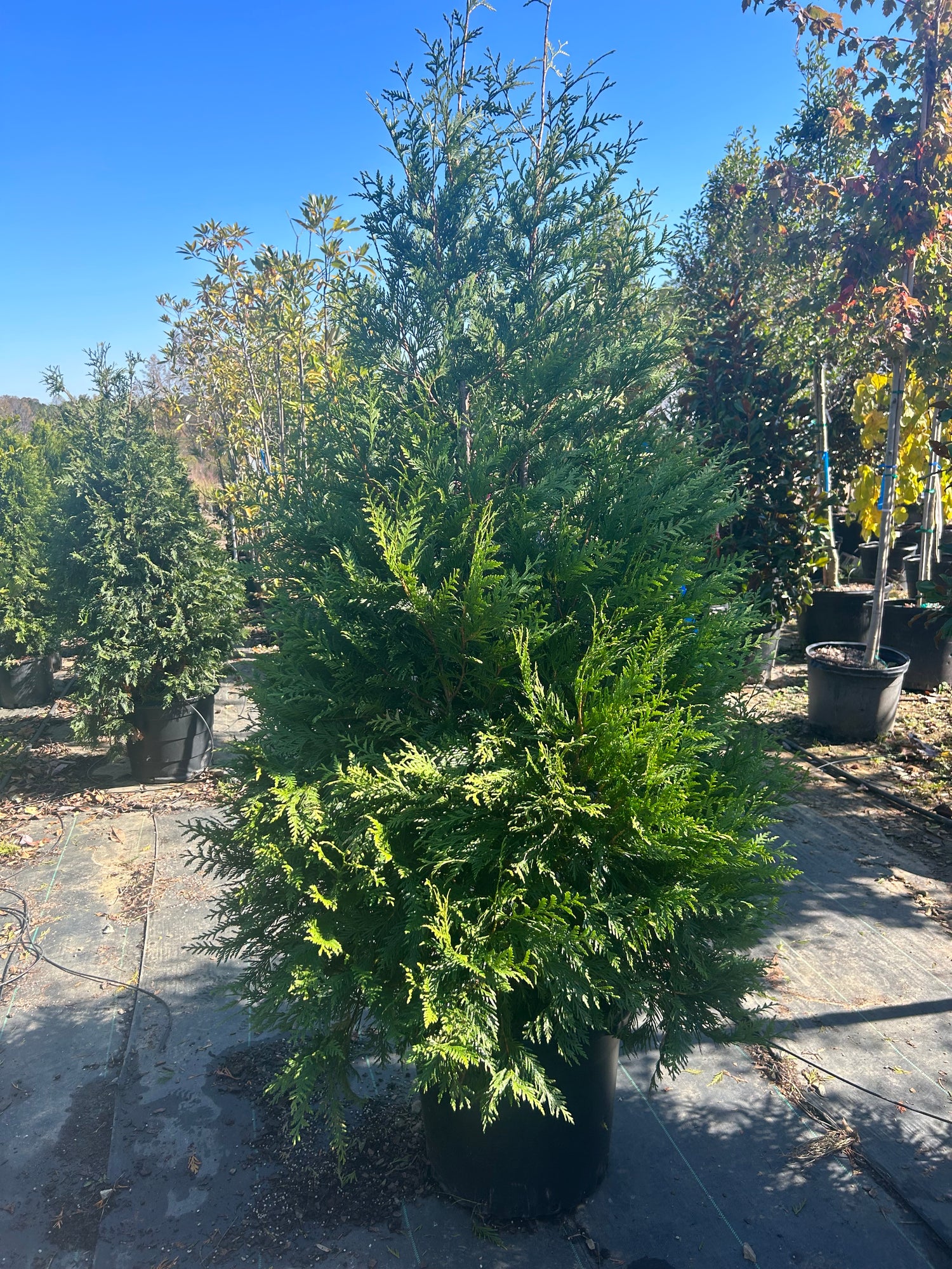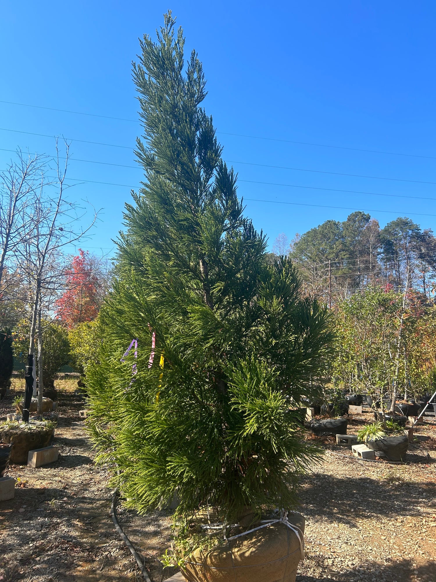 This tall narrow evergreen reaches ten to twelve feet in height and only three to four feet wide. With soft scale-like foliage and compact growth this is an ideal evergreen accent in any landscape.
